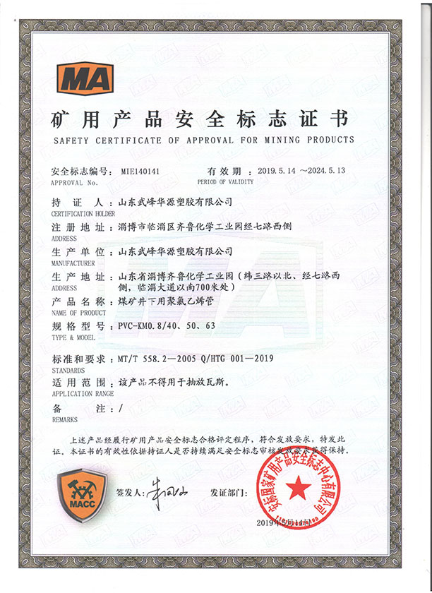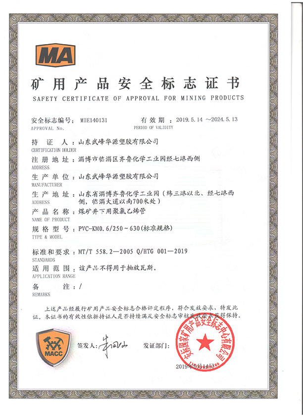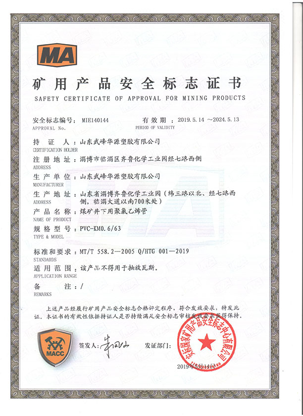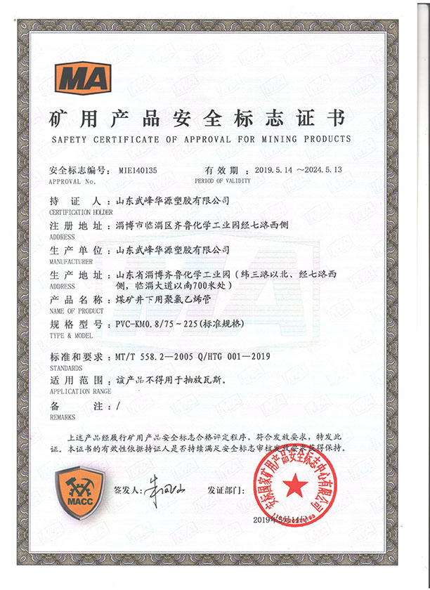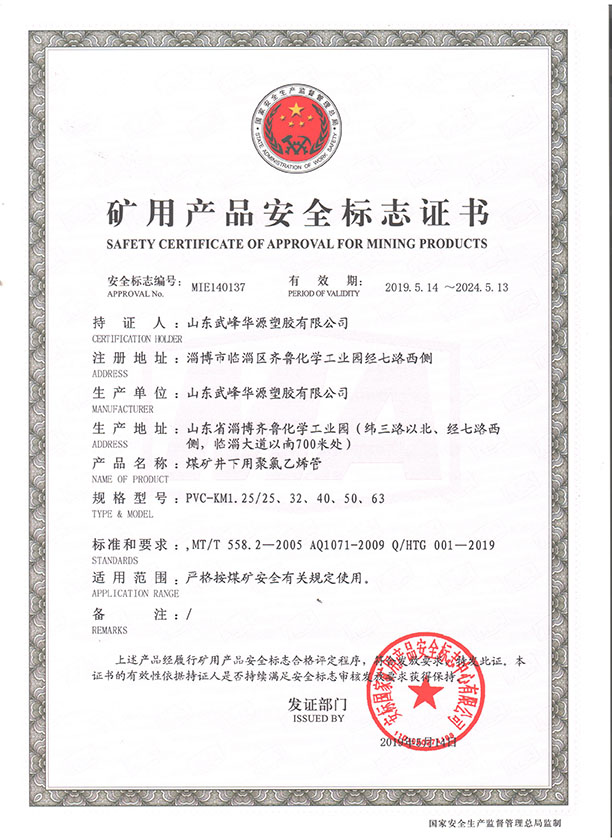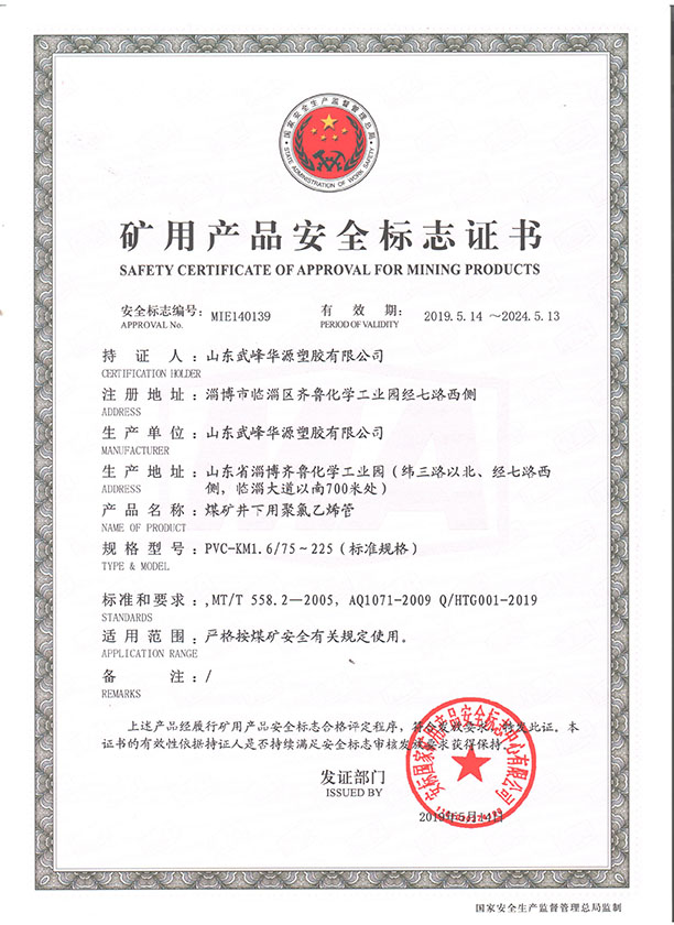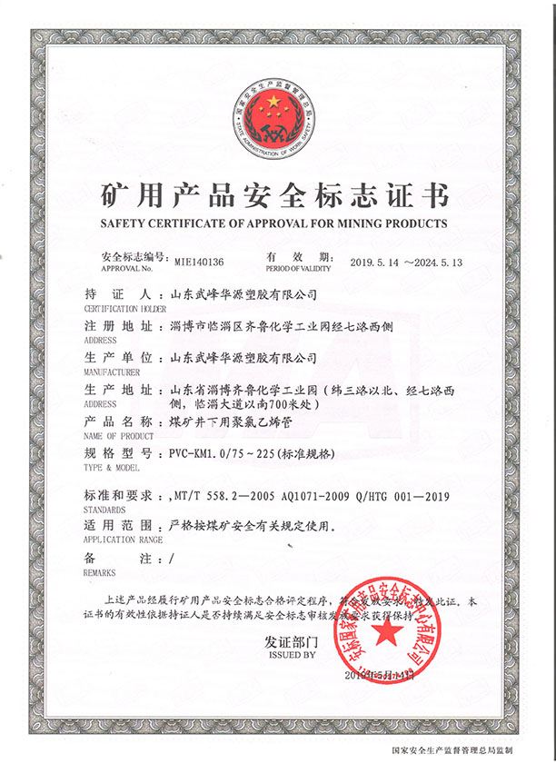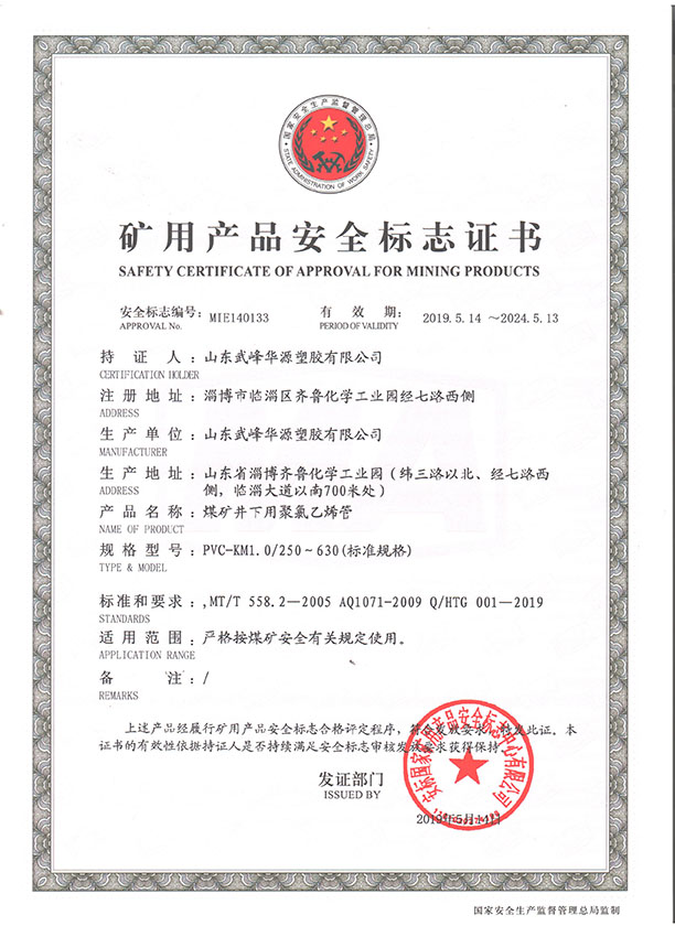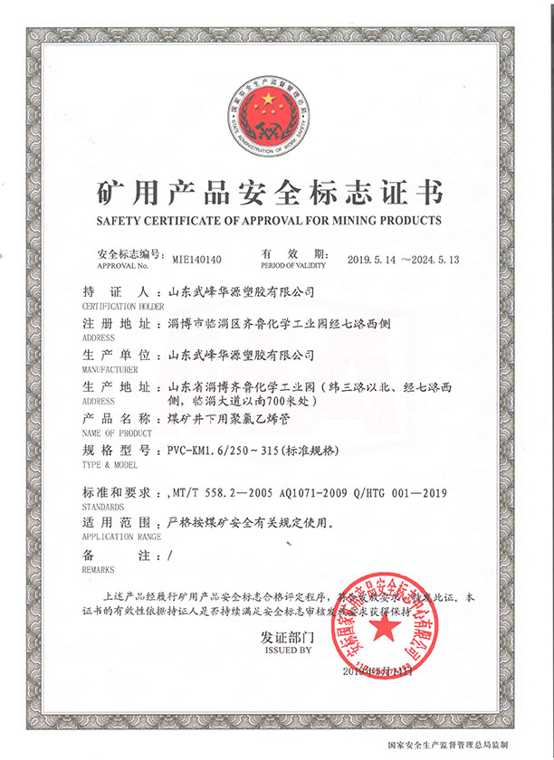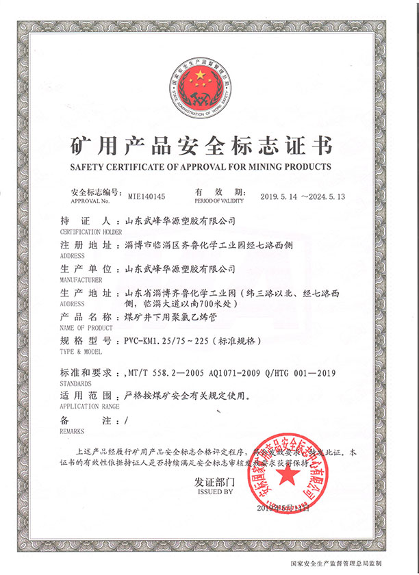 PVC煤礦管安標(biāo)